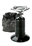 Century "Matchless" Single burner stove with carry bag is ideal for camping, tailgating, picnics and emergencies. With electronic ignition for quick match-free lighting and pressure regulated for consistent performance, you're ready. One large burner that allows even heat distribution and nickel plated drip tray offer a compact and economical cooking opportunity. Lightweight and easy to use, with a plastic base that uses 16.4oz propane cylinder (not included) , stores nicely in the carry bag. Perfect for emergency situations.